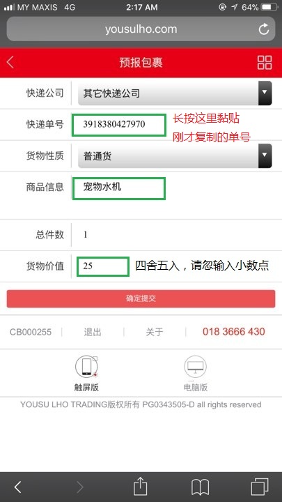 温馨提示: 仓库会等订单内的所有快递单号都到齐仓库才会进行打包并报价(报价均为马币)
