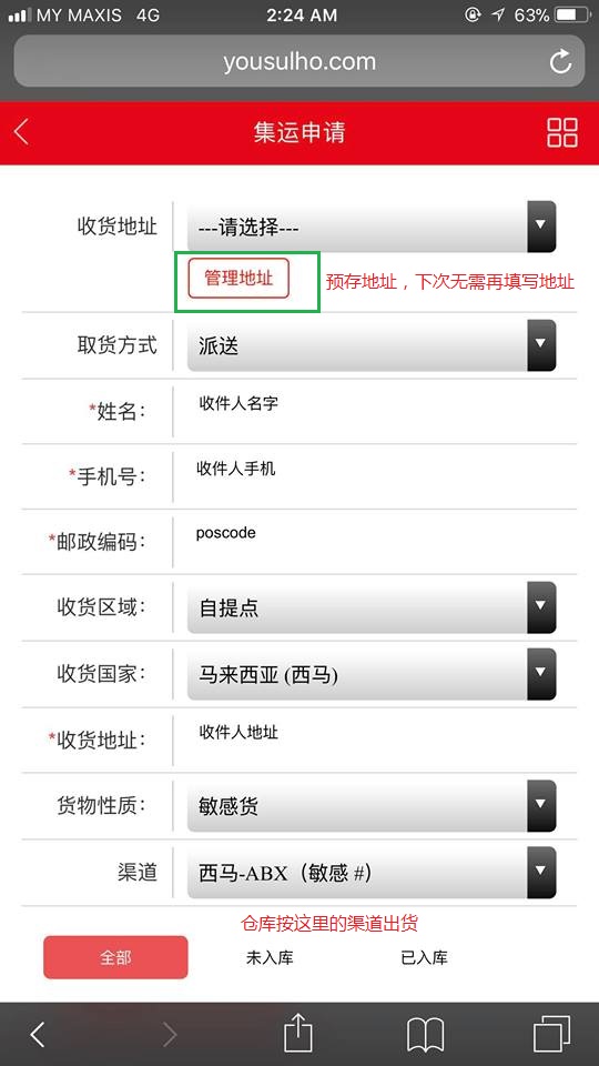 如需手动入仓服务请填写以下地址(地址一样只是H改成S )