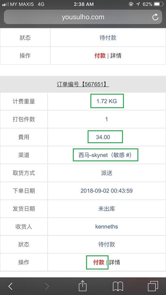 订单内所有包裹到齐后,仓库打包报价,登录付款,送往目的地
