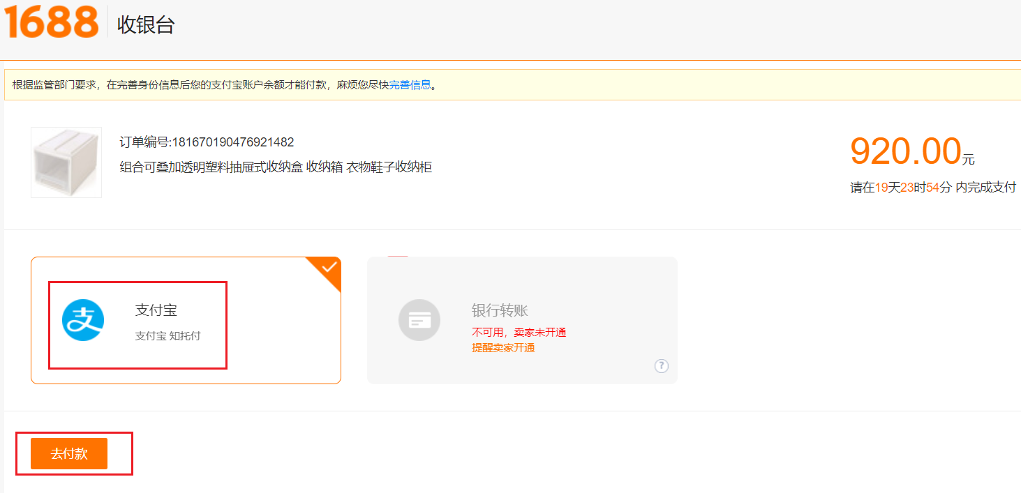 D1 选择支付宝>付款